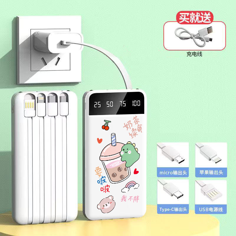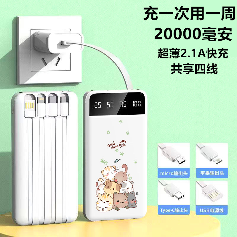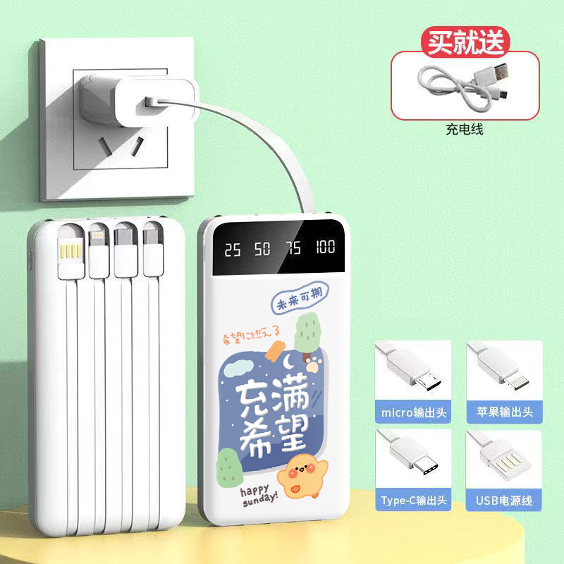 Mobile charging 20000 milliaman own line ultra-thin large capacity small portable fast charging action power suitable for Apple Huawei Xiaomi 10000 mAh