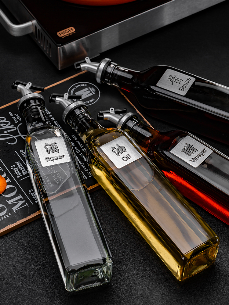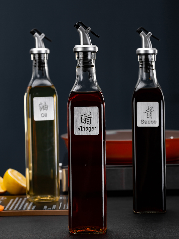 Oil bottle glass leak-proof oil pot household large oil tank soy sauce bottle vinegar bottle sesame oil small bottle kitchen supplies set