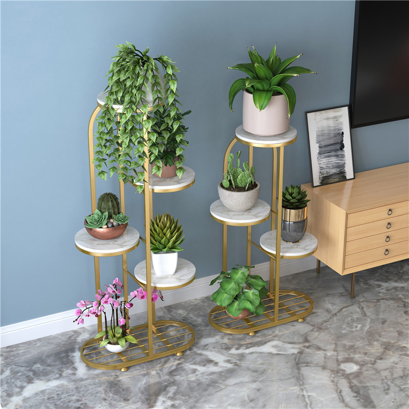 Iron Art Disposal Flower Shelf Indoor Floor Type Living Room Modern Minima Flower Pot Gold Gg Rack Small Space Multilayer Balcony
