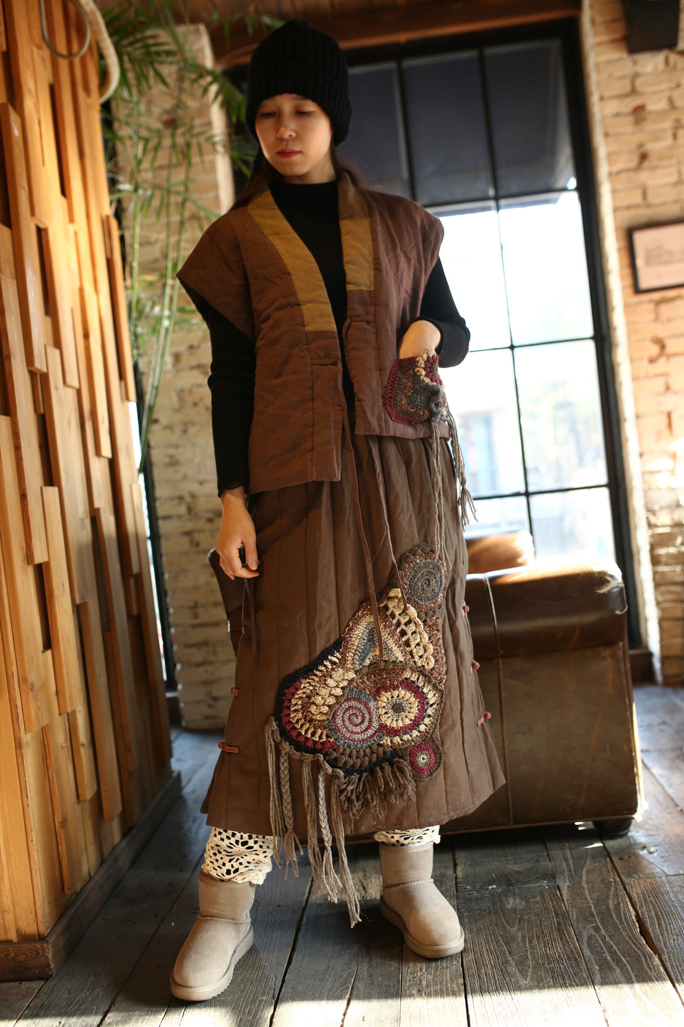 Split ~ loose design with cotton and irregular crocheted cotton skirt in autumn and winter