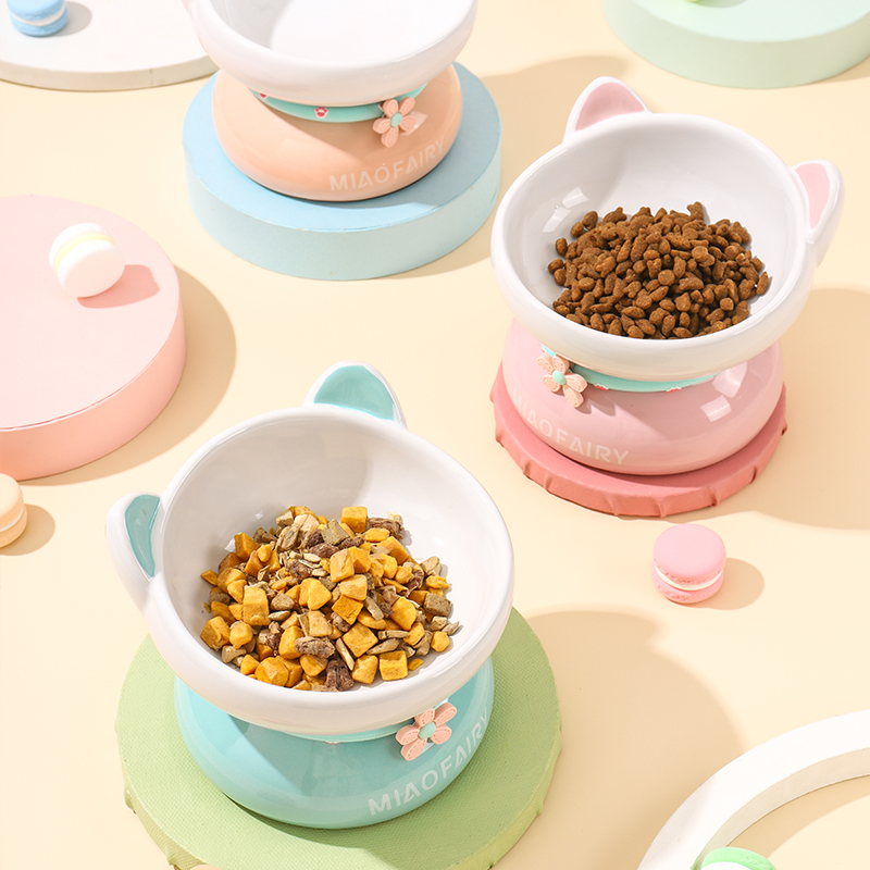 Cute Living Cat Bowl protection Cervical Spine Ceramic Cute Pet Kitty Cat Food Dual-use Rice Bowl Rice Bowl Rice Bowl