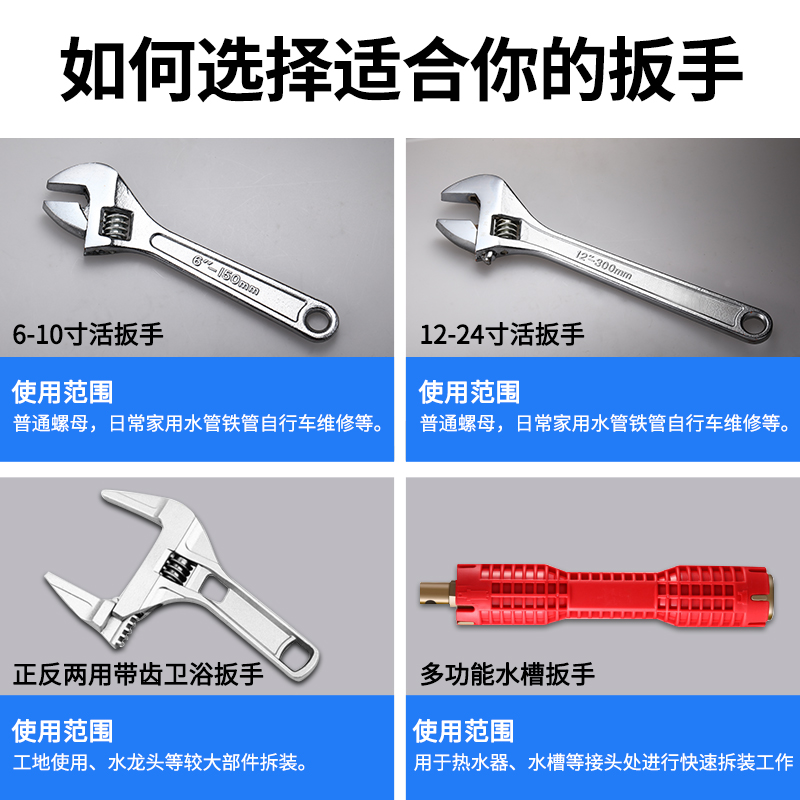 6 inch wrench8 inch wrench10 inch wrench12 inch wrench15 inch wrench6 inch rubber wrench8 inch rubber wrench10 inch rubber wrench12 inch rubber wrench bathroom adjustable wrench single head sink pull