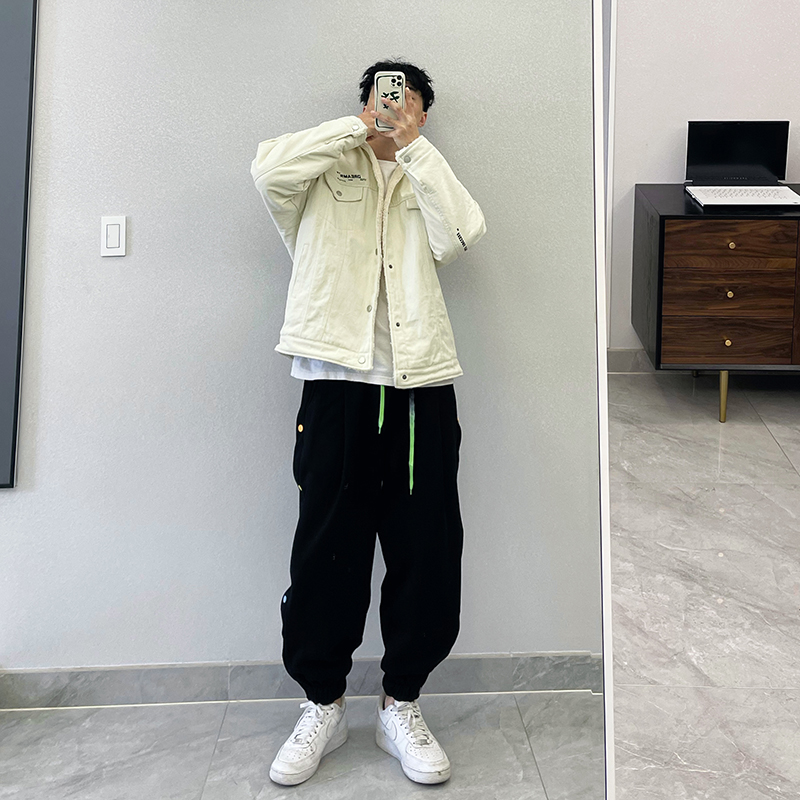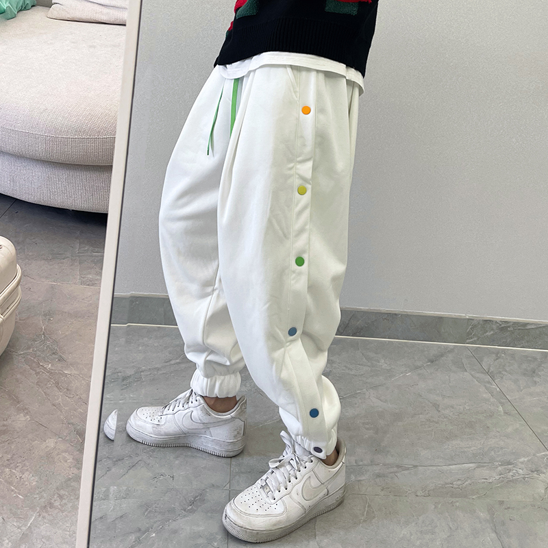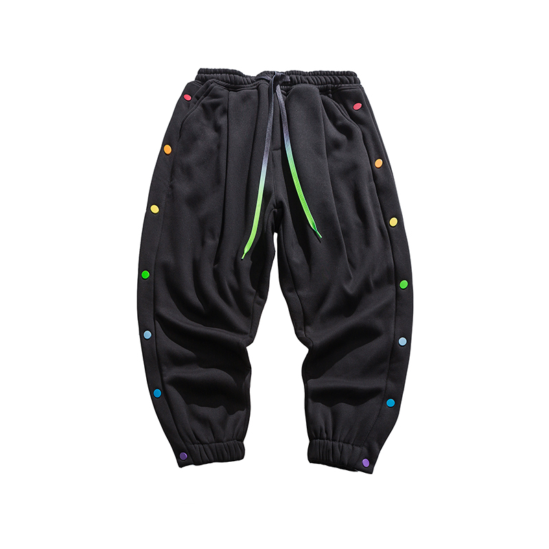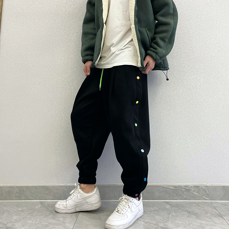PGUP STUDIO winter high street tide brand color row buttons plus velvet padded loose foot tie casual pants men