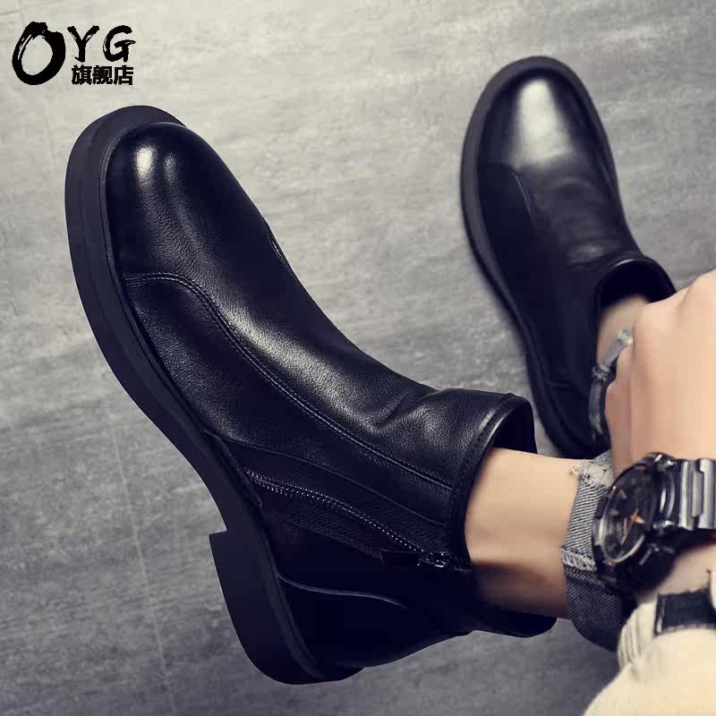Tide brand Martins men's winter 2021 new plus velvet warm high-barrel leather shoes British leather casual short boots