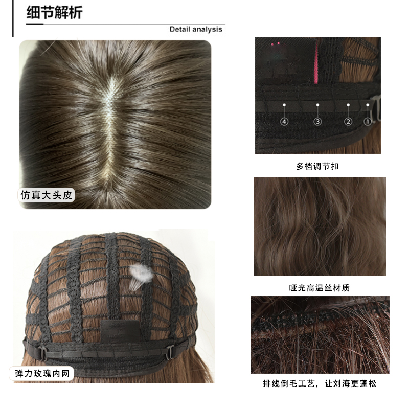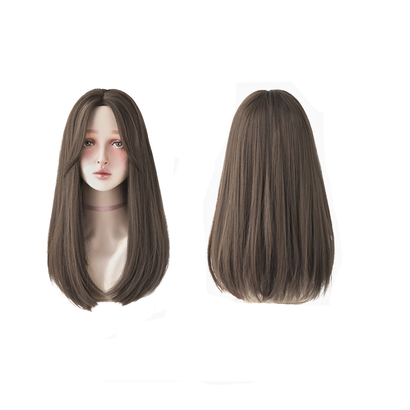 Split wig woman long hair long hair nemesis red medium long hair natural fix face 8 words no brownies Korean style full head cover