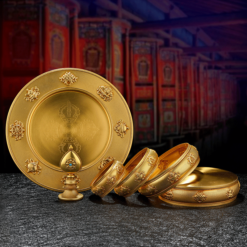 Larung College upgraded thickened eight auspicious pure copper manza plate with tray man tea plate for repair plate medium 12cm