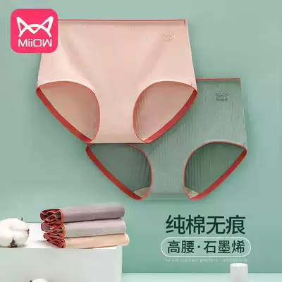 Cat underwear women cotton antibacterial crotch no trace high waist cotton breathable belly thin women Large Size new shorts head