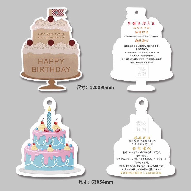 Baking card custom tag eating tips small batch birthday cake dessert bread toast box label custom logo decoration gilded pendant cake insert special shape