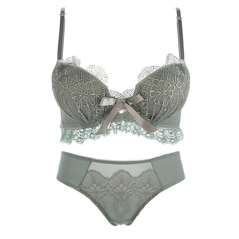 Sexy lingerie summer thin section female small breasts gather no steel ring adjustment type milk green bra set confusion