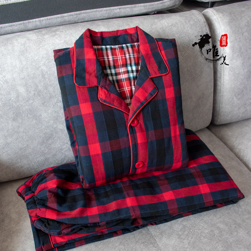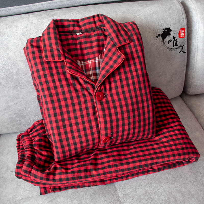 Pajamas Women's Winter Thickening Pure Cotton Old Coarse Cloth Long Sleeves Men and women Warm Pyjamas Thickened cotton Home Clothing Silk Cotton