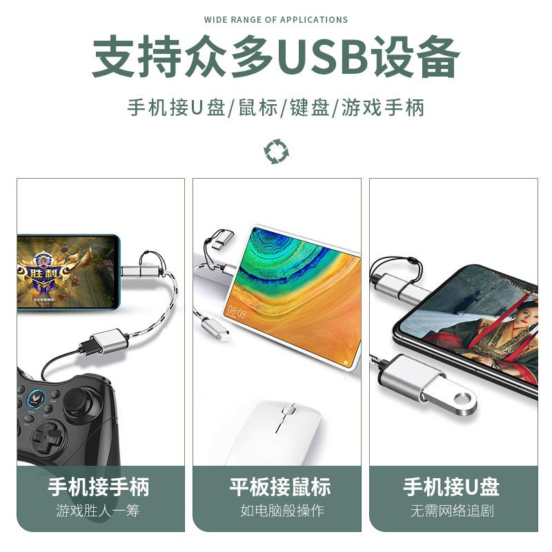 og adapter two-in-one data line Android type-c converter multifunction mobile phone download song to USB with body disc U apply Huawei Honor Xiaomi nova7 5pro glory 2