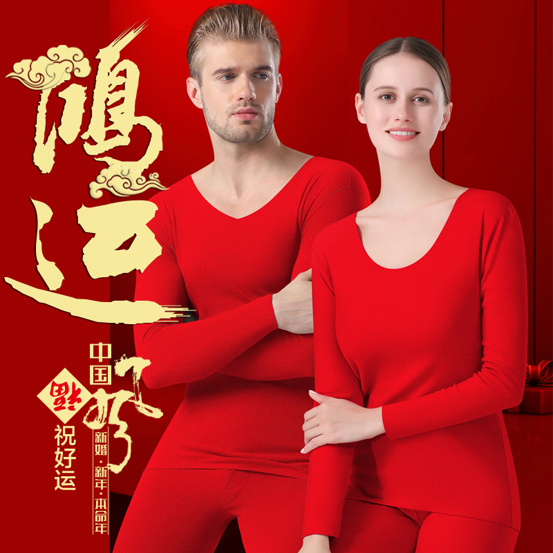 Red Red Fire (Hong Luck No Mark V Collar Suit) Male Foxen Life (Hongyun No Marks Round Neckline Pants 2 Socks) Male's Red Red Fire (Hongyun No Marks Round Collar Suit) Female Hong Fu Lifetime