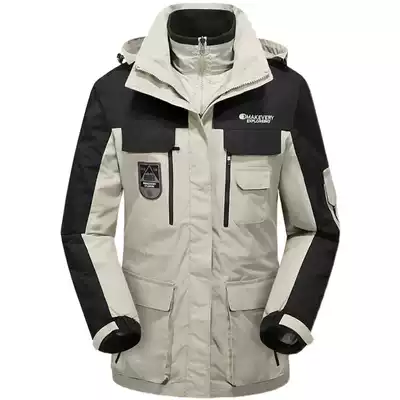Outdoor charge men's Tide brand medium and long version of white cold-proof tooling waterproof and windproof three-in-one detachable jacket