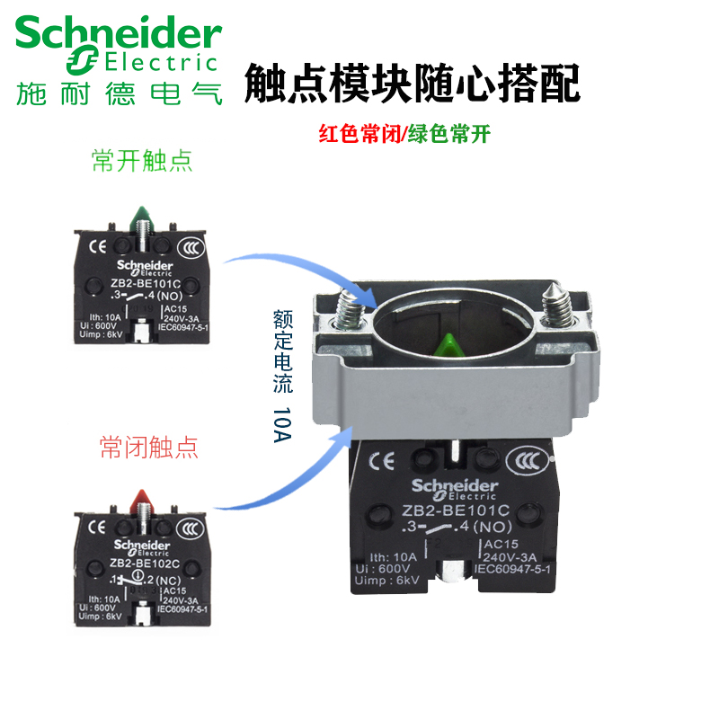 Schneider button contact ZB2-BE101C normally open installation base module ZB2-BE102C normally closed base