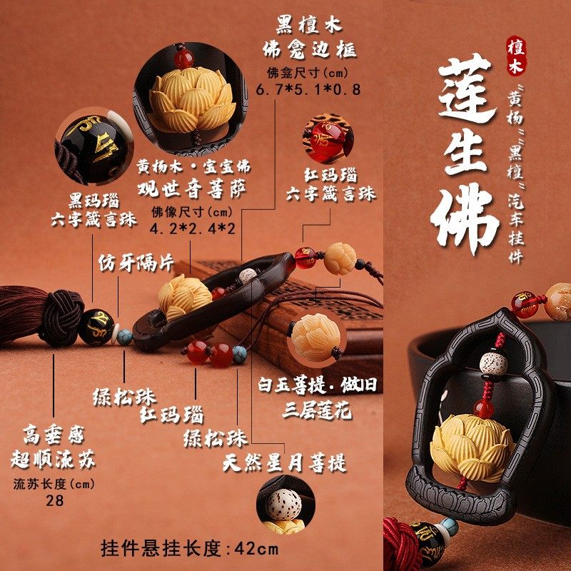Lotus Pendant car pendant piece Putuo Mountain temple perfuge stove Lingang light car decorated with gift box Lotus sandalwood quality stream Su