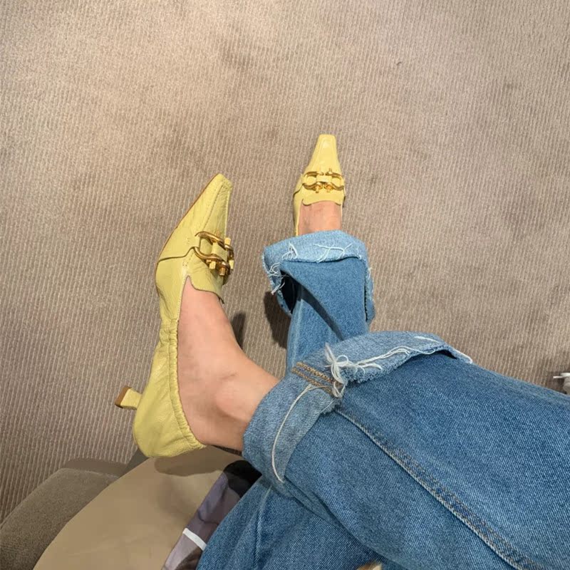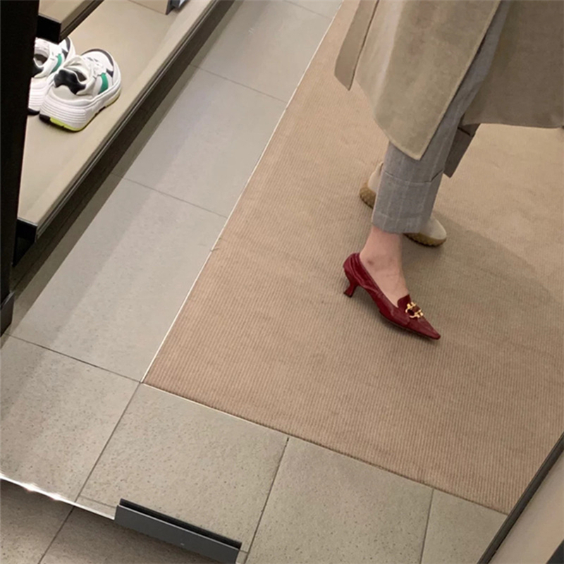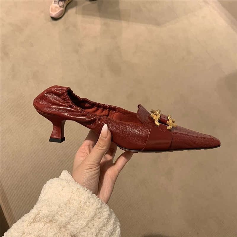 Europe and the United States 2022 early spring new metal buckle kitten heel high heels retro soft leather square toe shallow mouth stiletto shoes women