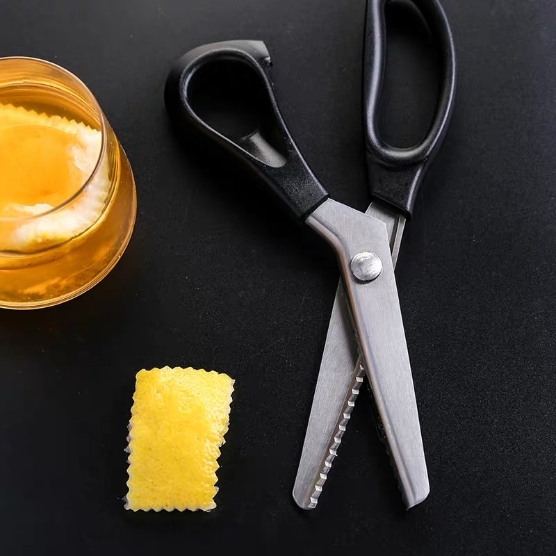 Stainless Steel Lemon Peel Scissors Orange Peel Cut Cocktail decorated with lace cut planing leather knife black shank wave scissors