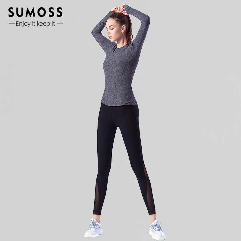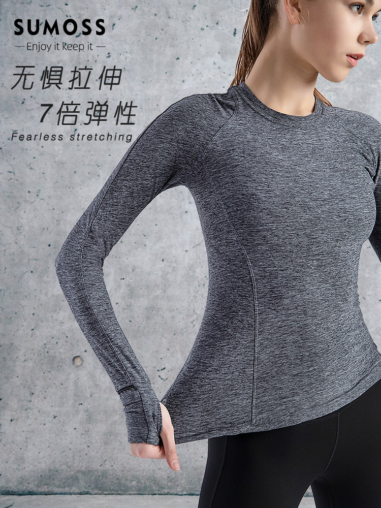 SUMOSS Lycra yoga top women's long-sleeved high-elastic tight-fitting quick-drying sports running training fitness clothes spring and autumn