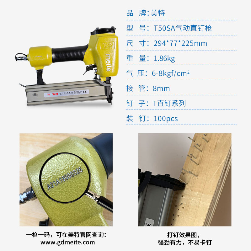 Meite straight nail gun T50SAB 50 pneumatic row nail gun t38 t50 straight nail t50 woodworking decoration pneumatic nail