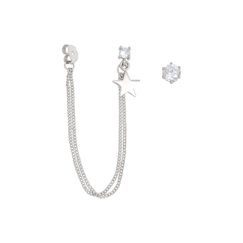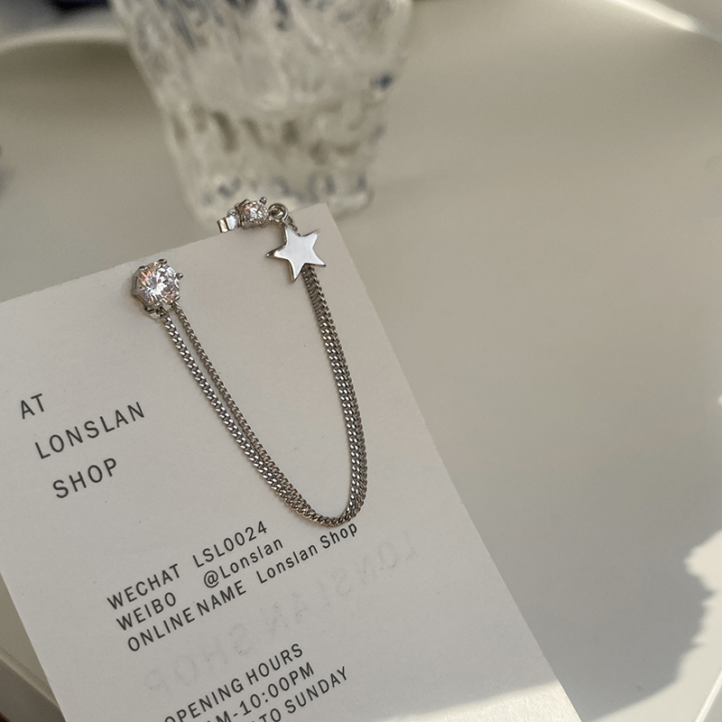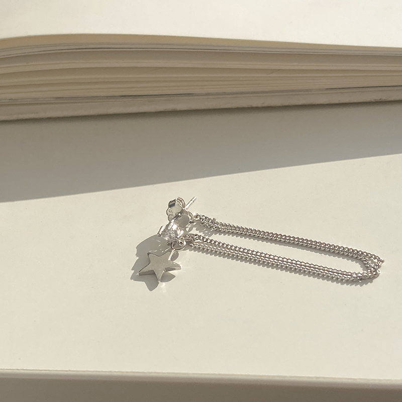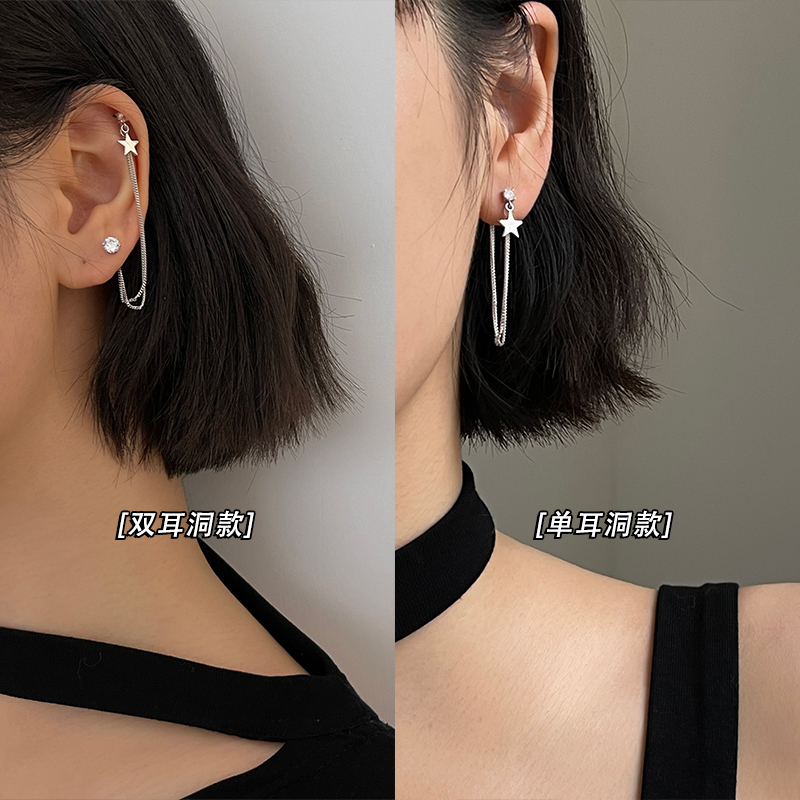 Pentagram Pure Silver Earrings Woman Asymmetric Ear Pin Cold Light Wind Korea Temperament Net Red Advanced Sensation Double Ear