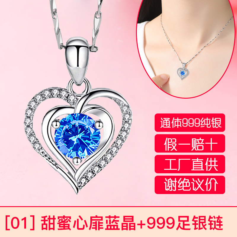 01 Sweet heart blue crystal 999 foot silver chain 01 Sweet heart white zirconium 999 foot silver chain 02 Love pendant Blue crystal 999 foot silver chain 02 Love pendant white zirconium 999