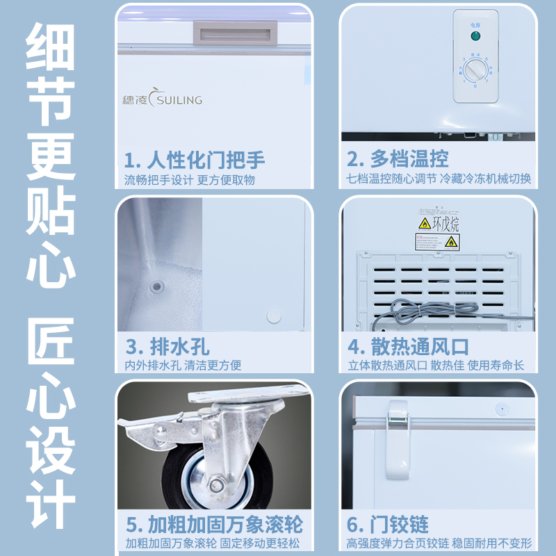 Suling freezer household small 100 200 300 liter horizontal refrigerator energy-saving fresh-keeping freezer refrigerated refrigerator