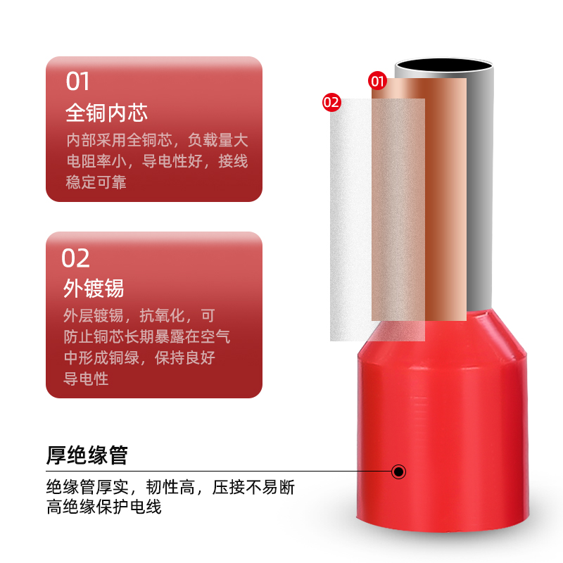 Needle - type 2120 cold - pressed terminal pre - insulated tube VE terminal plug - in nose copper - plated combination package