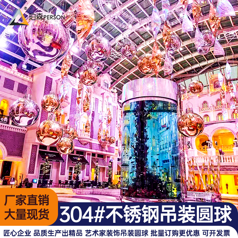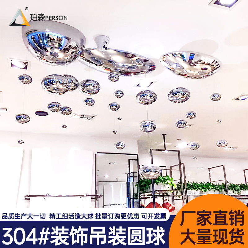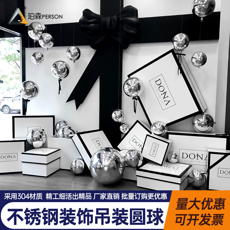 304# stainless steel ball suspended ceiling decorative ball shopping mall window decoration ball hollow hanging ball wire rope hanging ball