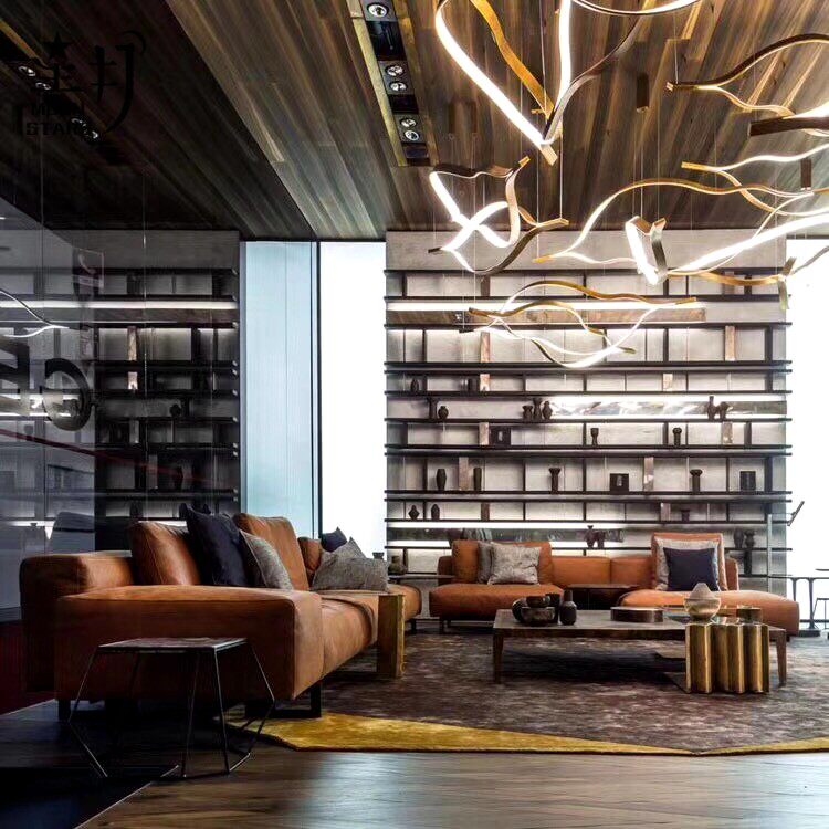 202 new minimalist designer restaurant strip hanging light rear modern living room lobby bar Terrace Wavy Chandelier-Taobao