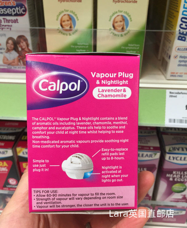 UK CAPOL Relief Children's Nasal Congestion Sleep Night Light 3 Chips Set Lavender and Refill