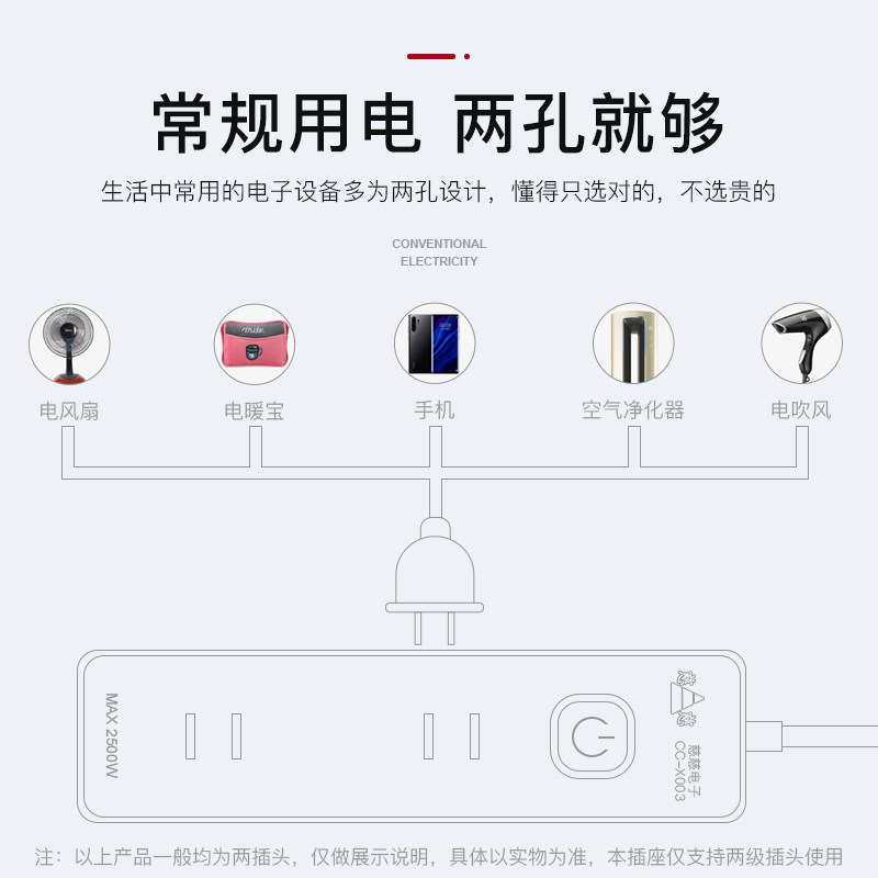 Two-foot insertion socket two-core towed wiring board converter small two-jack plug-board with long line student dormitories for home