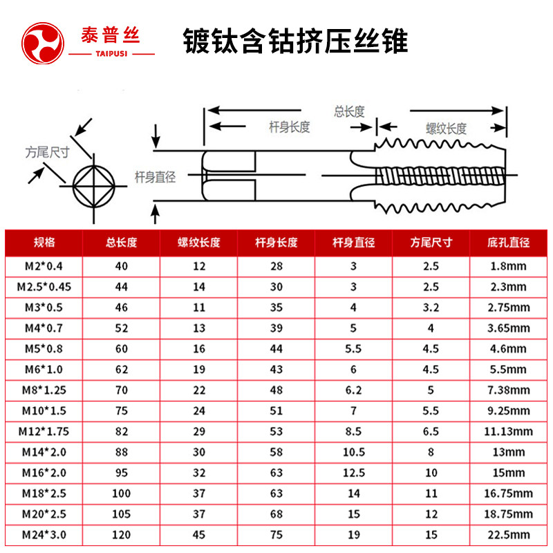 Titanium-plated high-speed mesh with cobalt-containing aluminum extrusion screw tapping machine with screw tapping chip-free M2M2 5M3M4M5M6M8M10M12