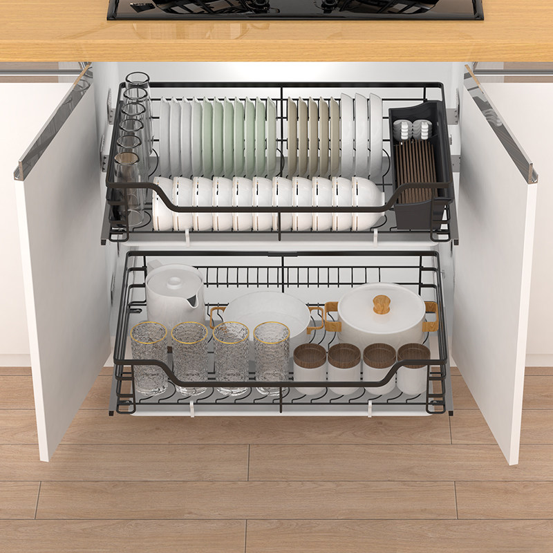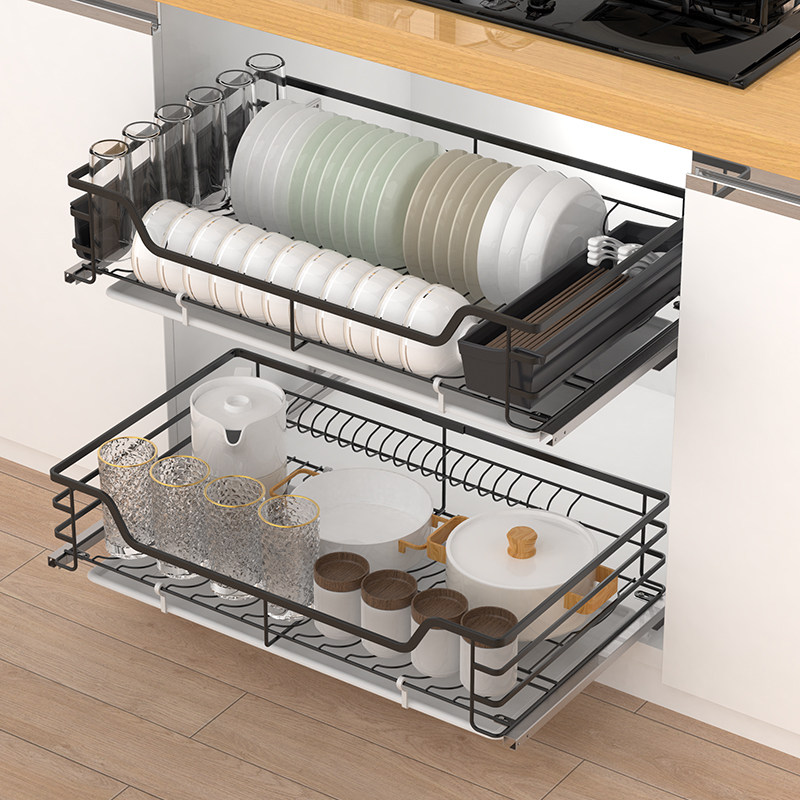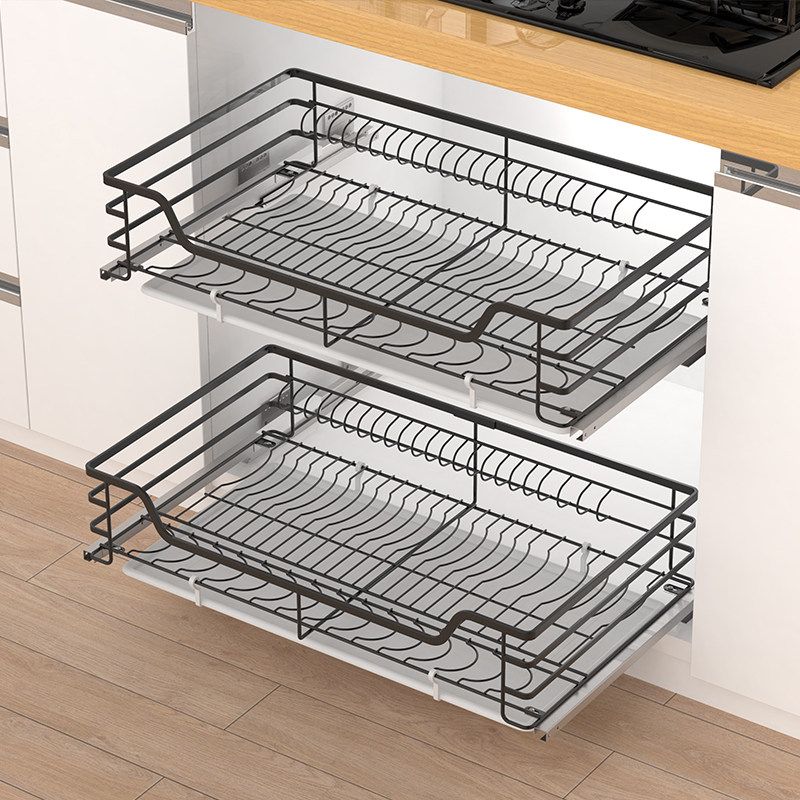 Heisberg pull basket kitchen cabinet 304 nanometer black stainless steel dishes shelf bowl kitchen cabinet damping drawer