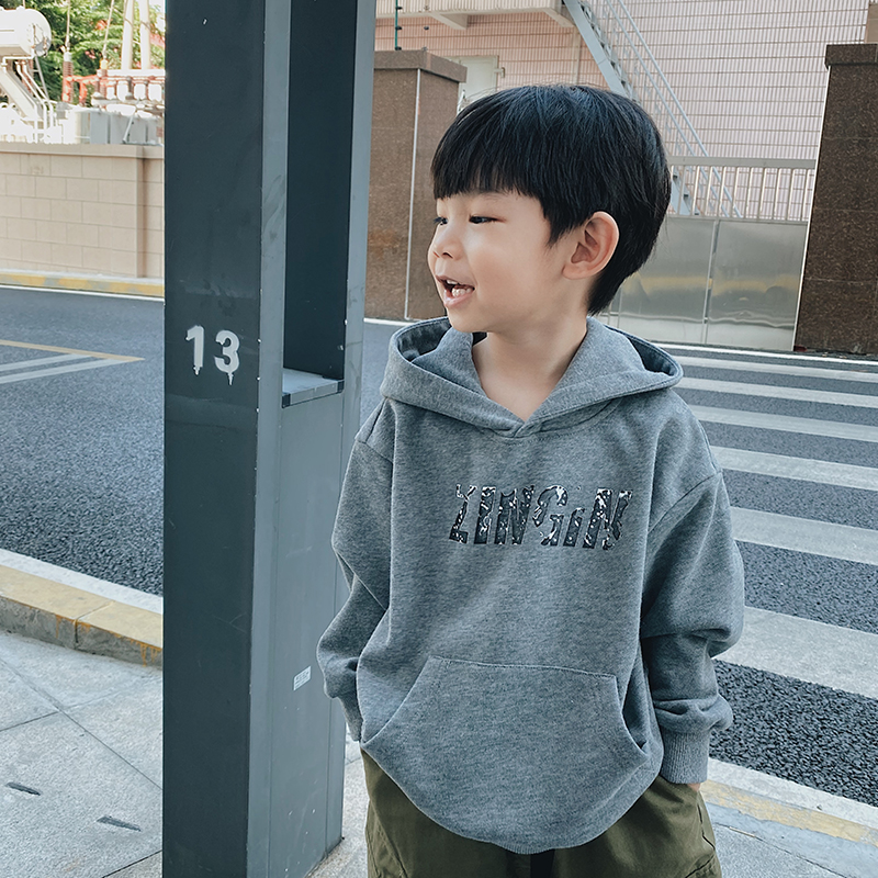 (Six Fold Back) Boy's Spring new Lianhood Sports Shirt Korean version CUHK Knit Foreign Pie Children Blouse Tide