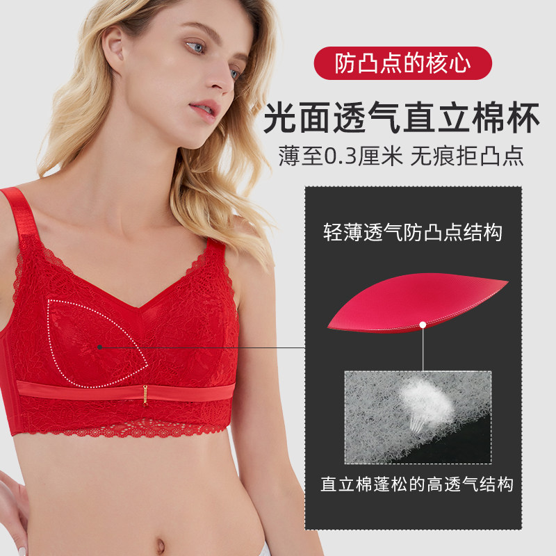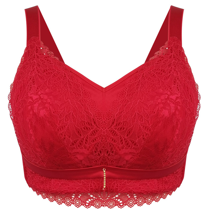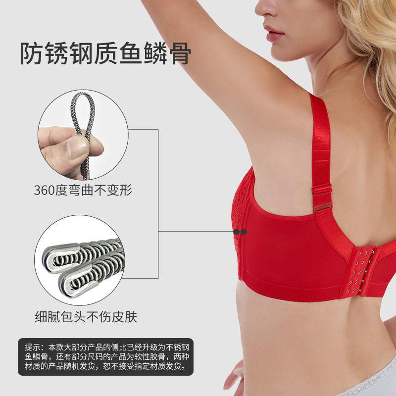 New subject Big breasted bra slim bra-free All-cup-proof Drooping Shrink Chest Underwear Woman Red for the year