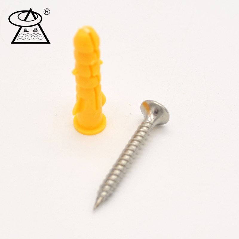 Small Yellow Fish Wall upper plastic puffy tube expansion screw Fluffy Stopper with stainless steel self-tapping fixing gel grain
