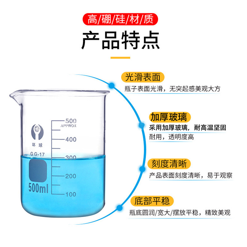 Glass beaker measuring cup measuring cylinder laboratory high borosilicate beaker high temperature resistant baking cup chemical experiment demonstration equipment