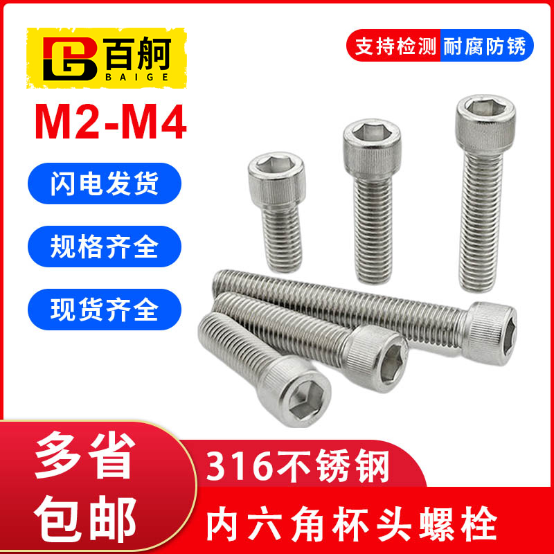316 stainless steel hexagon socket head bolt hexagon socket screw M2M3M4 hexagon socket head screw rod