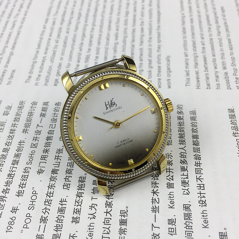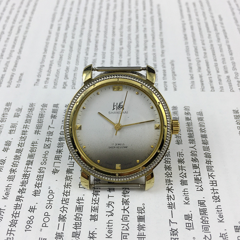 Original stock Shanghai brand yellow shell and white face manual mechanical watch, diameter 37 mm, 1 strap