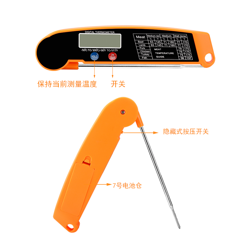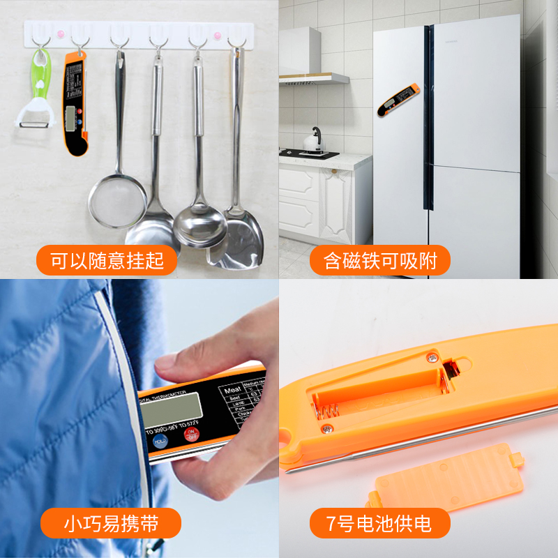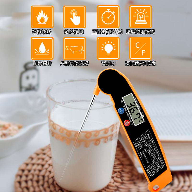 Kitchen food thermometer household foldable stainless steel probe milk meter intelligent barbecue baking thermometer