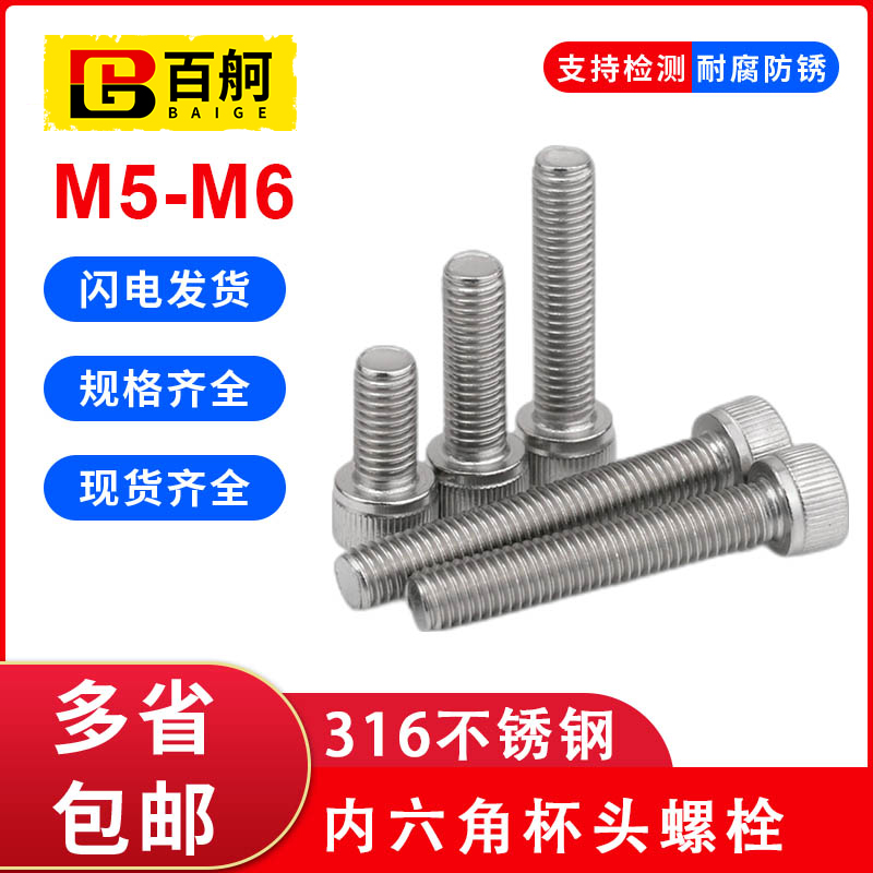 316 stainless steel hexagon socket head bolt long screw m5m6 national standard hexagon socket head full tooth screw