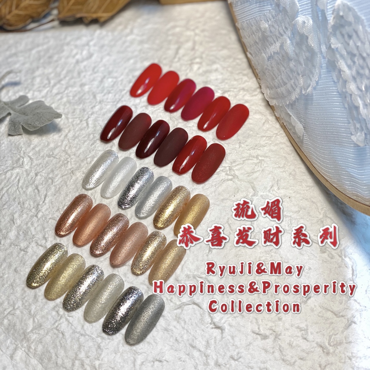 RyujiMay Liumei New Year's New Color at the end of 2020 Gongxi Facai Series Red Gold and Silver Glitter Nail Polish