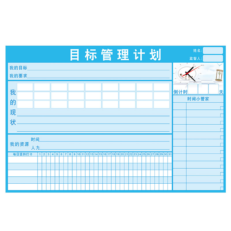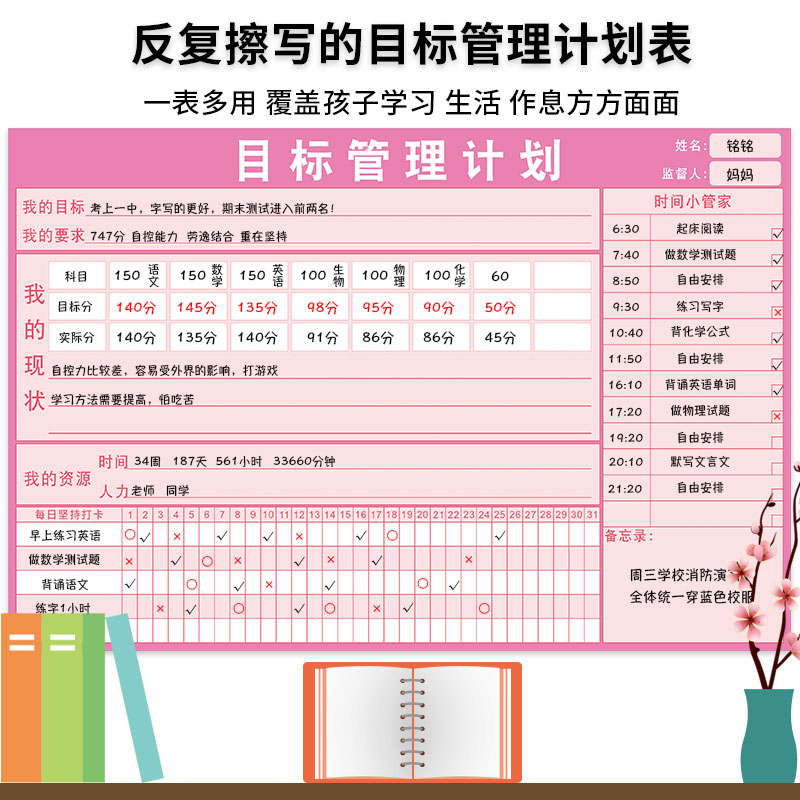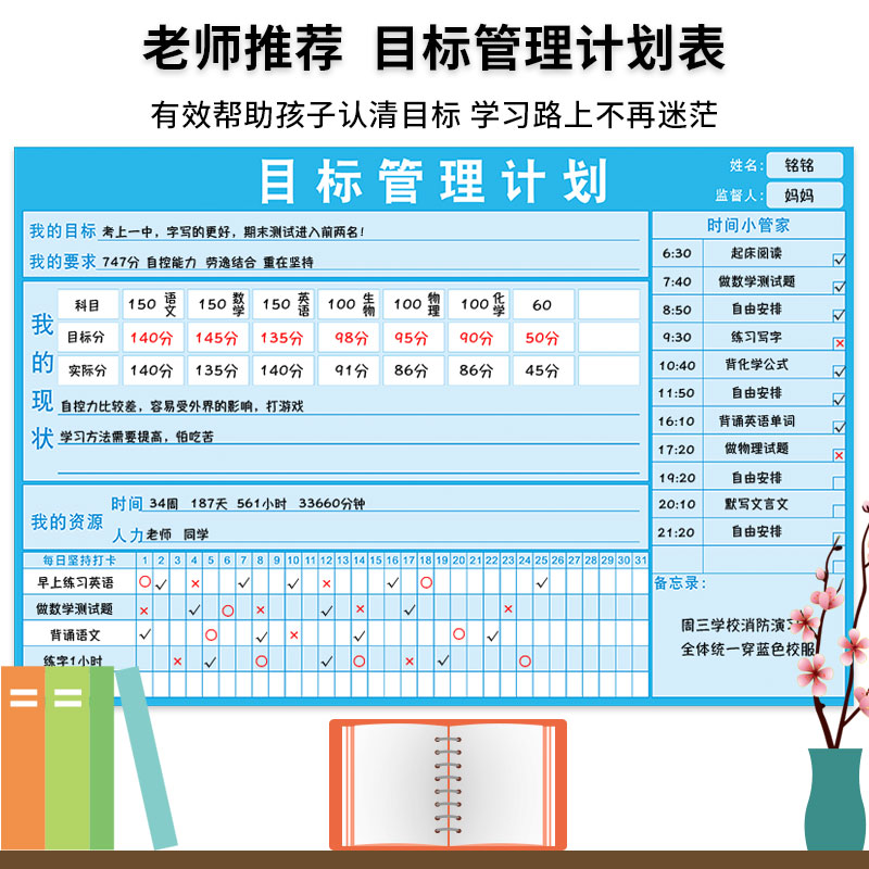 Students start school goal management plan table wall stickers home study punch record table time arrangement self-discipline artifact