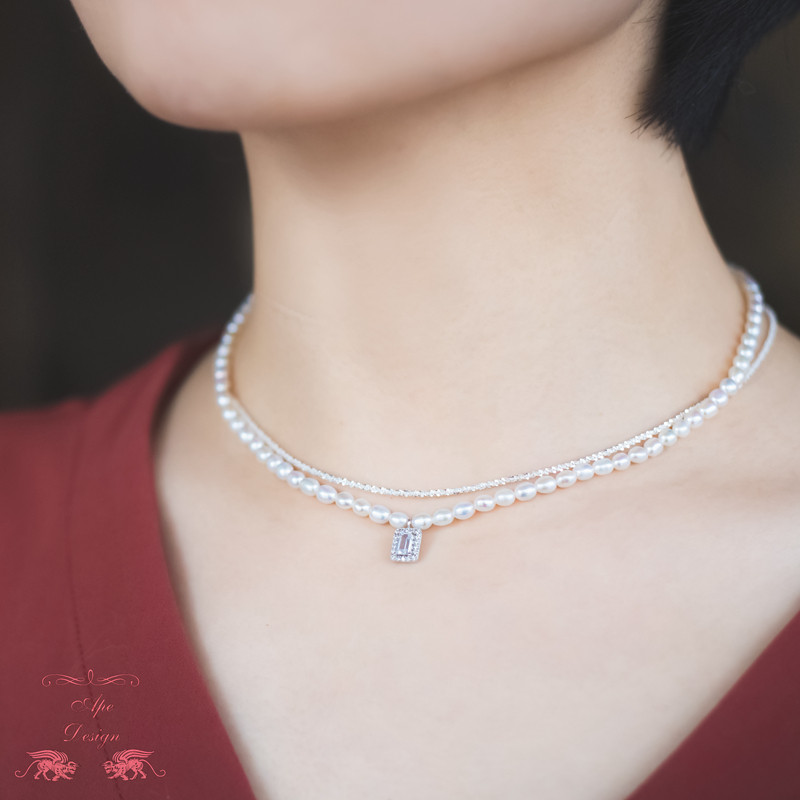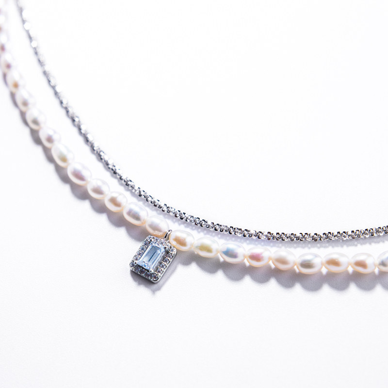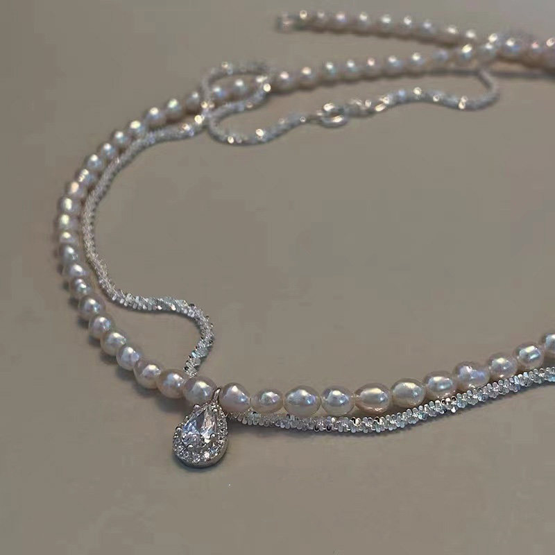 Sparkling Italian 925 Silver Chain Vintage Natural Pearl Necklace Fashionable Pearl Stacked Necklace Jewelry