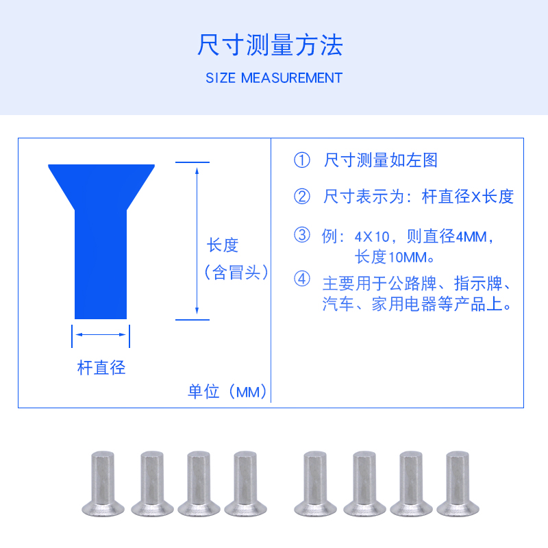 Solid countersunk aluminum rivets road signs special Liu Ding hand-knocked air gun riveting nails billboard fake factory
