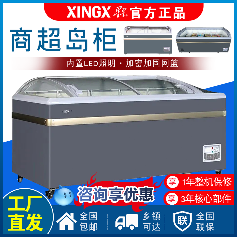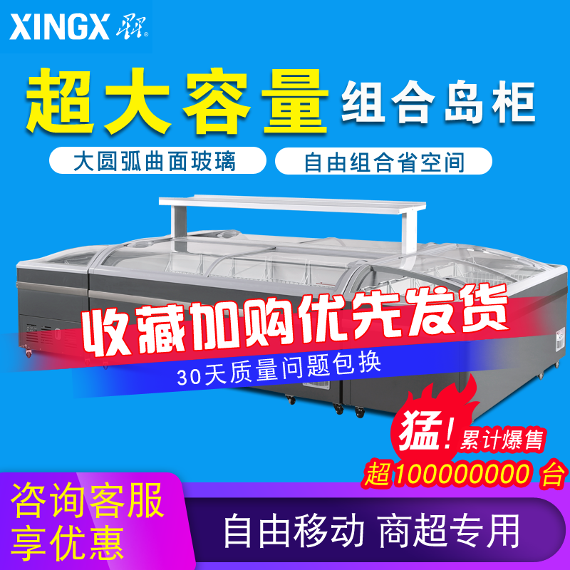 Stars 700 Liter Commercial Large Capacity Freezer Horizontal Display Case Refrigerated Frozen Supermarket Frozen Combined Island Cabinet 500