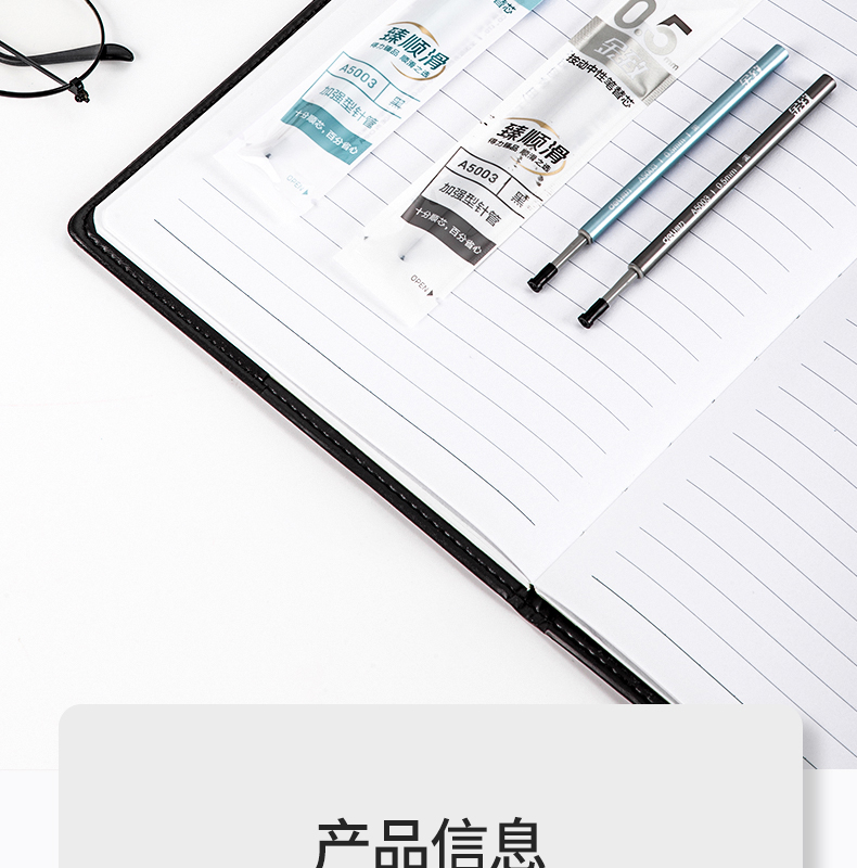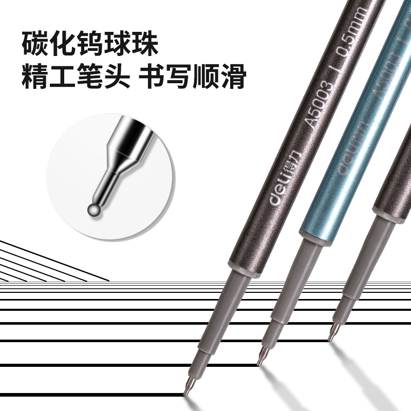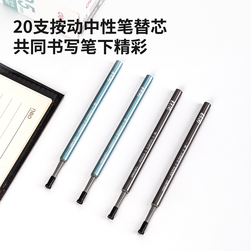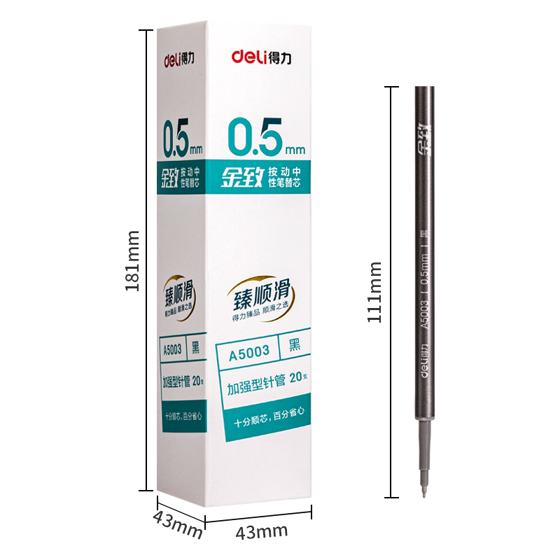 Deli Jinzhi series push pen core 0 5mm black reinforced needle tube smooth gel pen replacement core A5003