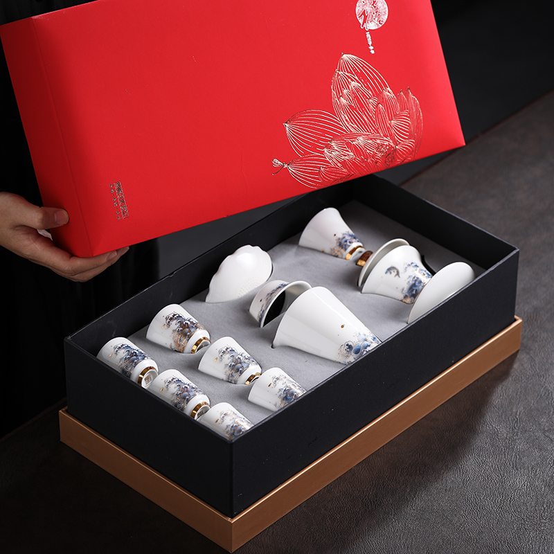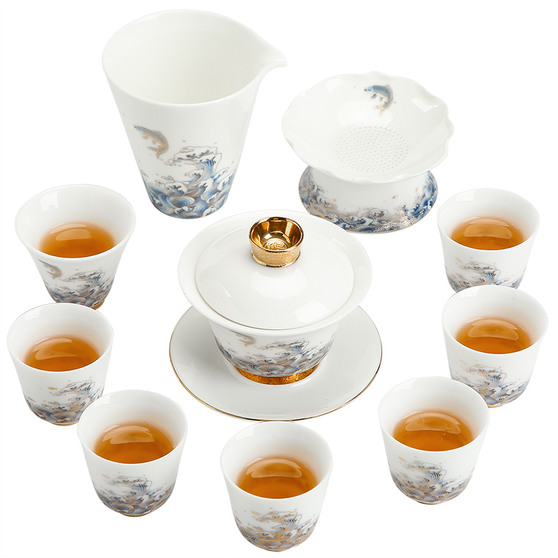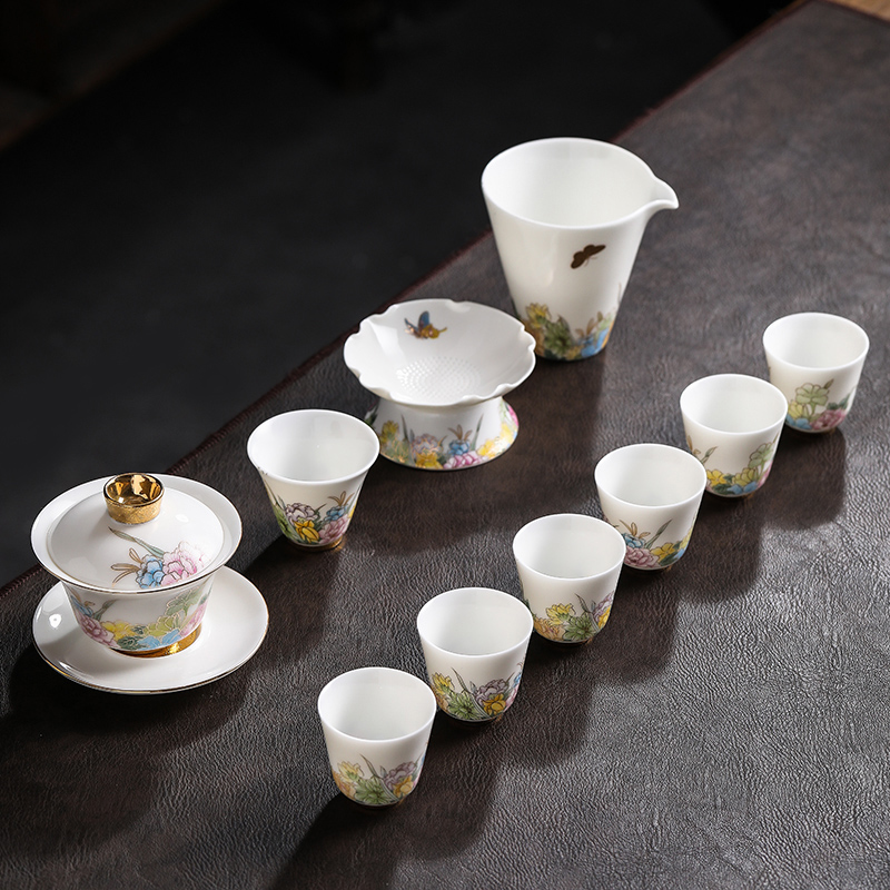 High-end tea supplies Set White porcelain Chinese style Kung Fu tea set Tea drinking tools Tea pot cover bowl Gift