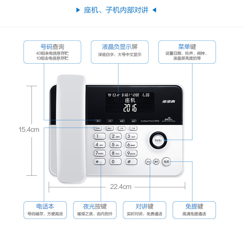 Backgammon w202 cordless telephone sub-mother phone telephone reporting button luminous Chinese menu