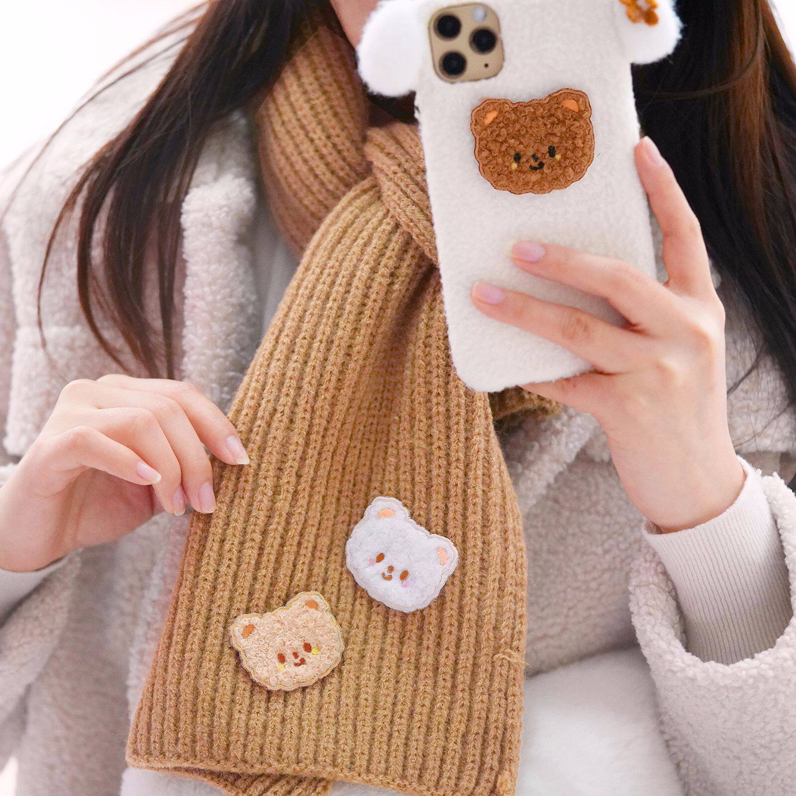 Velvet Teddy Bear Scarf Down Jacket Embroidery Cloth Patch Clothes Patch Shoes Winter New Bag Phone Case Decoration